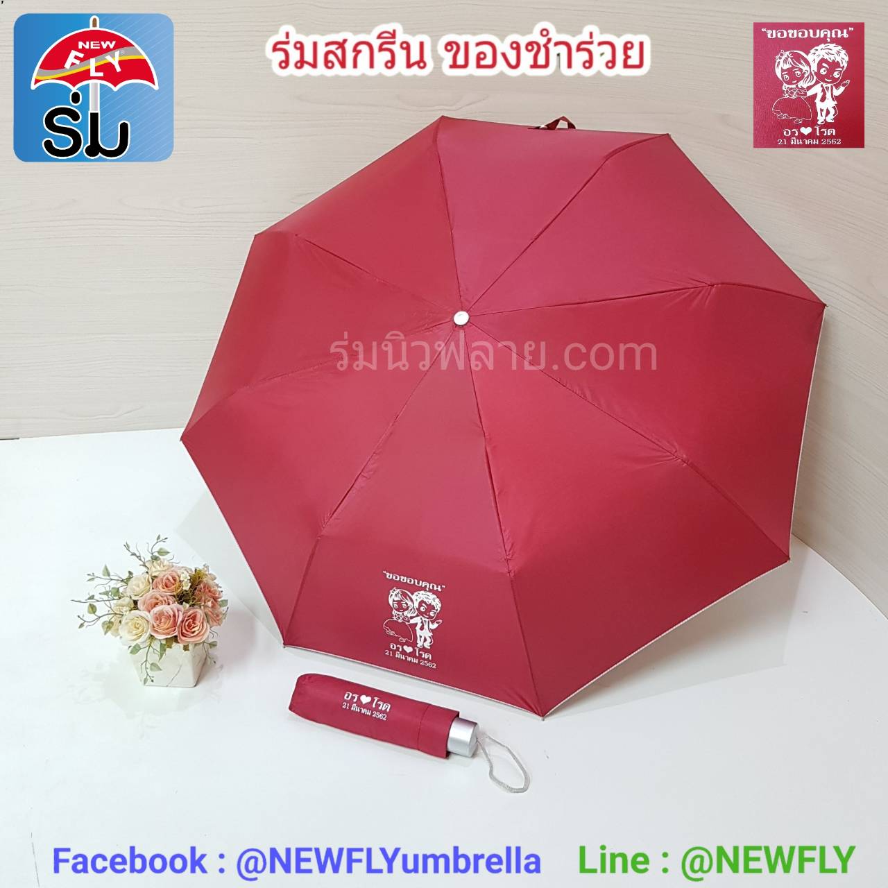 ของชำร่วยงานแต่ง ร่มงานแต่ง ร่มของชำร่วย สกรีน ร่มพับ 2 ตอน