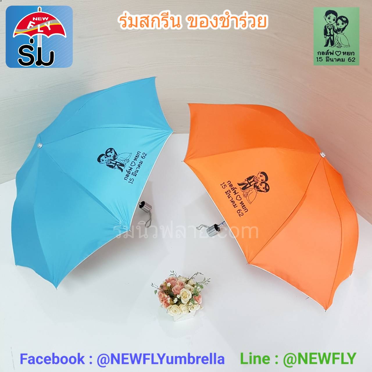 ของชำร่วยงานแต่ง ของที่ระลึก ร่มงานแต่ง ร่มสกรีน ข้อความ ร่มพับ 2 ตอน