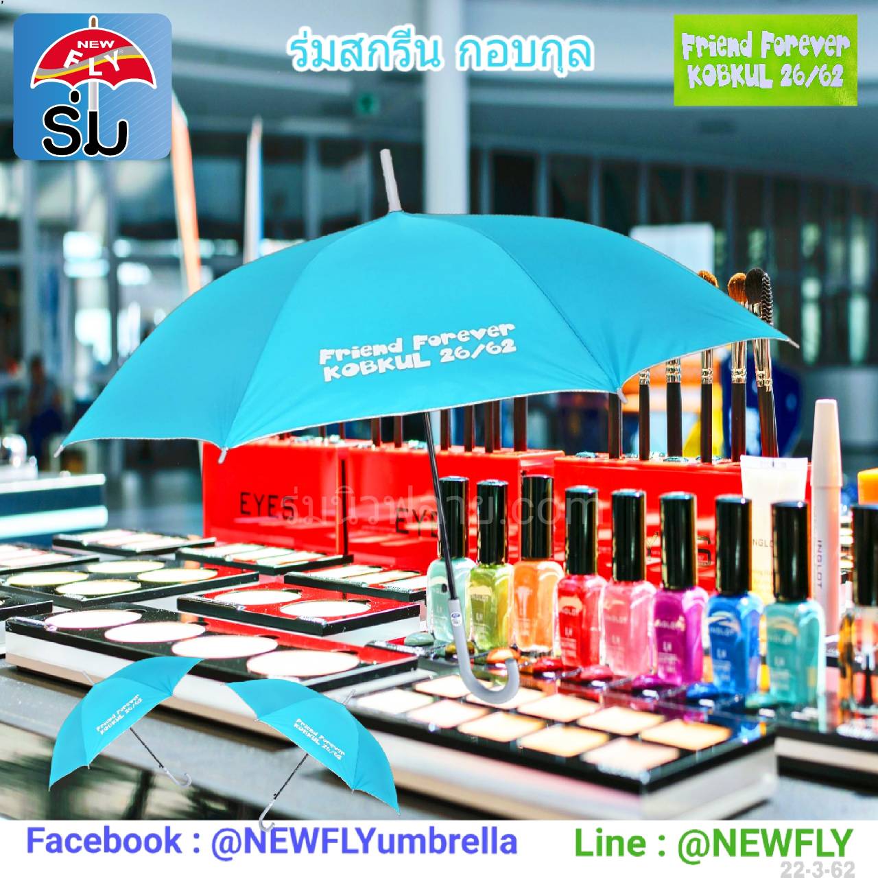 * ร่มนิวฟลาย เราเป็นโรงงานผลิตร่ม มีสินค้าอีกมากมาย เช่น ร่มแฟชั่น ร่มโค้งแฟชั่น ร่มพับ ร่มพับ3ตอน ร่มตอนเดียว ร่มเด็ก ร่มไม้เท้า ร่มกอล์ฟ ร่มกลับด้าน ร่มสนาม ร่มแม่ค้า เสื้อกันฝน