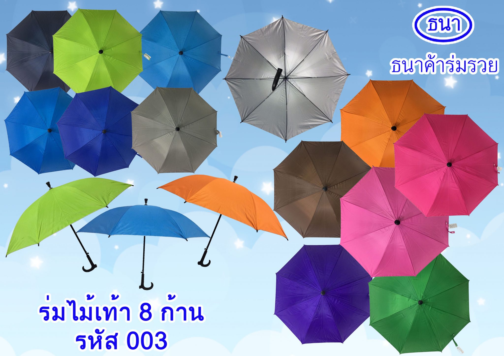 ร่มตอนเดียวไม้เท้า 8 ก้าน รหัส 003